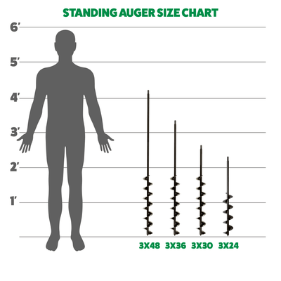 The bulb auger features a 3-inch diameter and your choice between a 24-inch, 30-inch, 36-inch, or 48-inch extended length. It also features 12 to 18 inches of tough, 10-gauge flighting on a strong, 5/8-inch solid steel shaft.