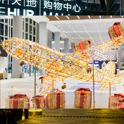 Jet set with this Giant Pre-Lit LED Airplane! An awesome addition for your commercial or city center Christmas or Holiday display this larger-than-life giant LED Airplane will make you take flight. This festive and fun display will create the perfect backdrop indoors or outdoors. Built on durable metal framing with outdoor rated LED mini lighting to provide a illuminating glow.