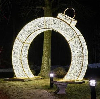 Spruce up your commercial space or city hub with this epic holiday attraction! The Giant Pre-Lit LED Bold Ornament Archway brings a jolly and whimsical touch to any indoor or outdoor holiday event. Made with strong metal framing and warm white outdoor-rated LED lights, it's guaranteed to shine bright and merry.