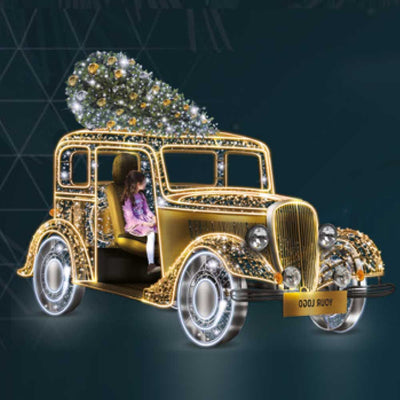 Put your display in high gear with this Giant Pre-Lit LED Classic Car! Ideal for Christmas, holidays, or any event, this larger-than-life vintage vehicle adds a cheerful vibe indoors and outdoors. Great for commercial or municipal displays. Made with heavy-duty metal and weather-resistant LED mini lights, it offers a dazzling and unforgettable experience. Embrace the holiday spirit with our unique photo backdrop - the Giant Pre-Lit LED Classic Car!