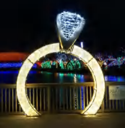 Step into a world of love with our Giant Pre-Lit LED Diamond Ring Archway! This grand and sophisticated arch is ideal for both commercial and municipal settings, as its vibrant LED lights bring a warm glow to any indoor or outdoor area. Add a touch of festive joy with this charming and one-of-a-kind piece.