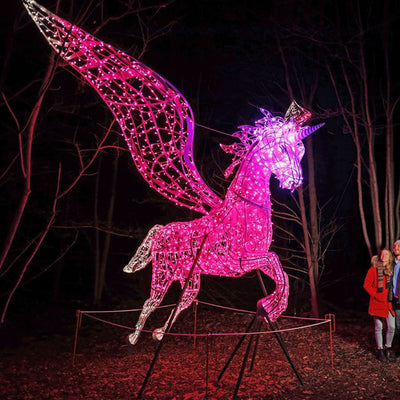 Create a unique holiday photo backdrop for your property with our Giant Pre-Lit LED Unicorn!