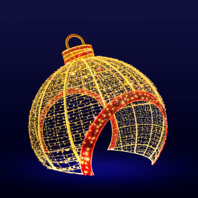 Transform your holiday season into a spectacular and unforgettable one with the stunning Giant Pre-Lit LED Walk-Through Two-Toned Ornament. Ideal for commercial properties and municipalities, this dazzling display will enrich any holiday program with its joyous and festive atmosphere. Crafted from strong, long-lasting metal and adorned with LED mini lights, it exudes a vibrant and lasting holiday charm that will captivate all who lay eyes on it. Make cherished memories and take stunning holiday photos with the one-of-a-kind Giant Walk-Through Ornament as your backdrop. Don't hesitate to make this must-have addition to your property now!