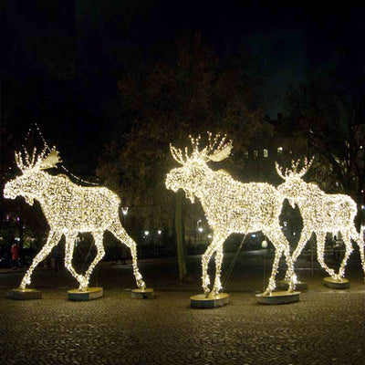 Our 12ft Giant Pre-Lit LED Moose is an impressive display perfect for commercial and municipal settings. With its warm white lights, the display will surely stand out during the holiday season!