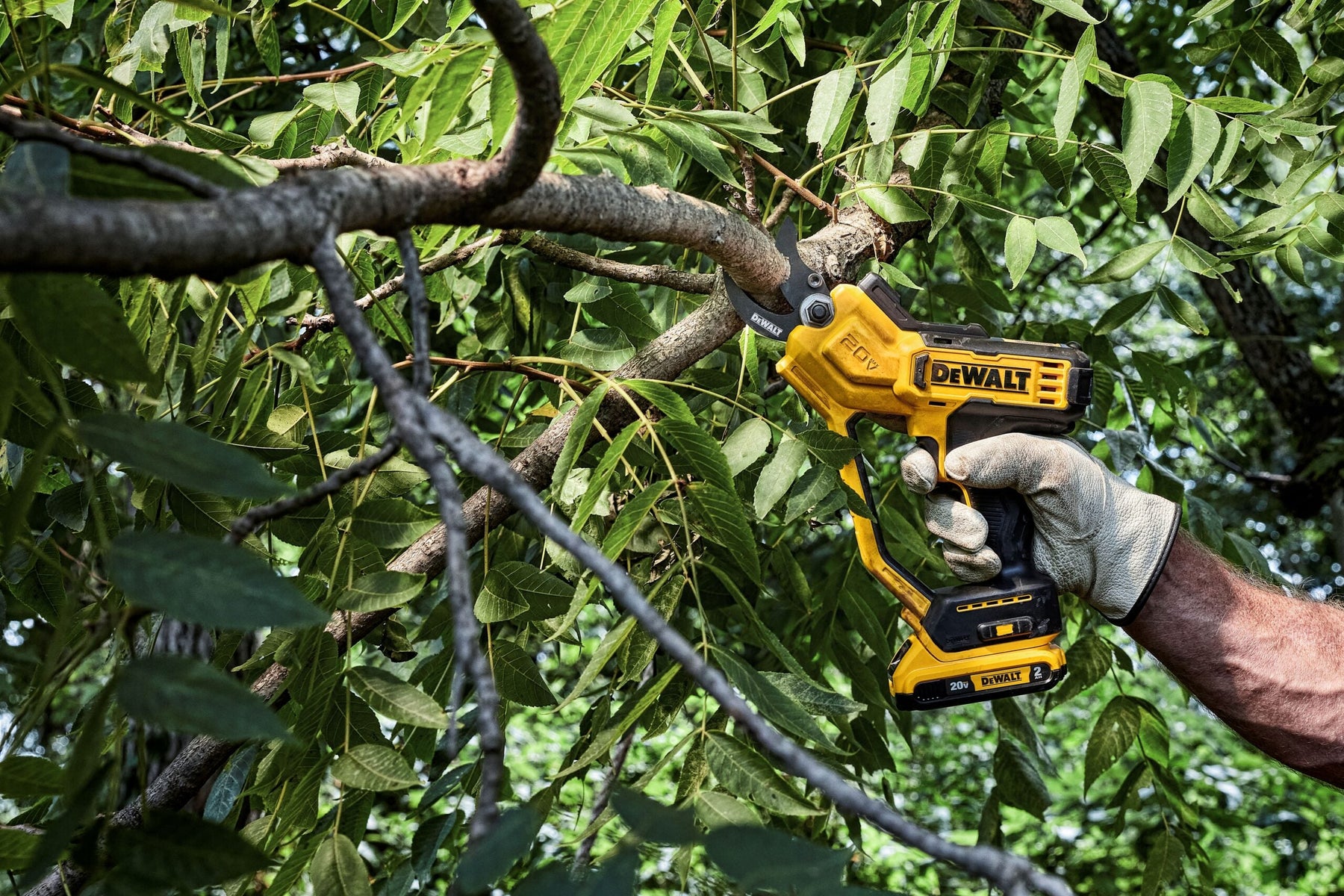 Cut flowers, trim bushes, and clip unwanted branches with this multi-use 20V MAX* 1-1/2 in. Cordless Pruner. The Pruner can deliver up to 1,100 cuts per charge** with a 1-1/2 in. cut capacity for thick stems and shrubs. Weighing just 3 lbs. (tool only), this lightweight tool was designed to help you tackle tough jobs throughout the day with less strain. This unit requires 16X less effort on average to make cuts than a manual pruner***. The on-board LED provides illumination for visibility in dark spots as you prune. Cut smoothly with the Pruner's non-stick, coated blades and easily switch the blades out with the included change tool. Battery sold separately.