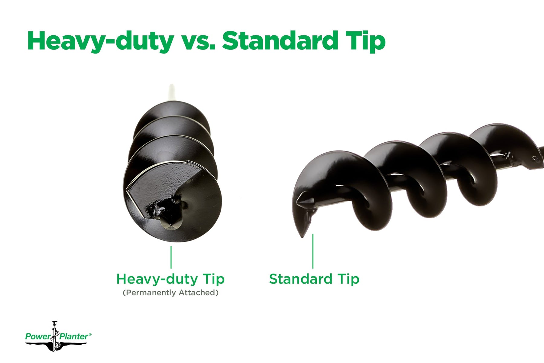 The extended-length bulb auger will fit ½-in drills. For tougher soil conditions like sand, clay, and loose, rocky material, choose the “Heavy Duty” option which includes a heavy-duty tip made from military-grade abrasion-resistant material.