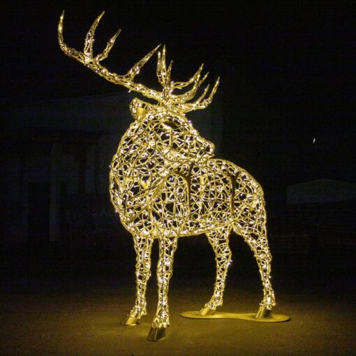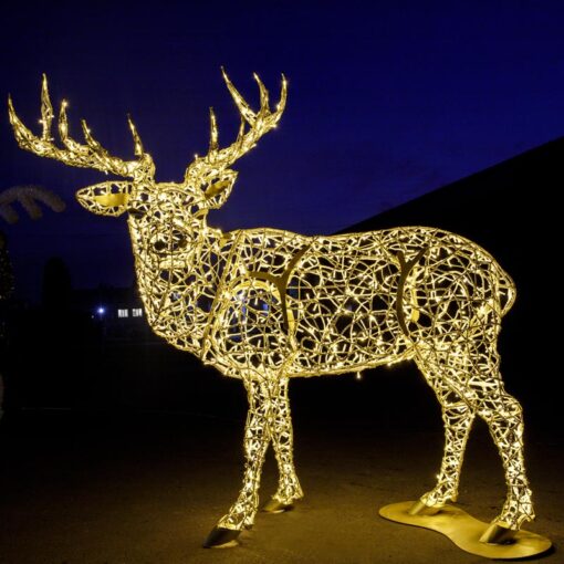 Enhance any indoor or outdoor space with this stunning Giant Pre-Lit LED Natural Posing Reindeer. Its oversized, elegant design and bright LED lights make it ideal for commercial and municipal displays, bringing holiday magic to any setting. Elevate your decor with this exclusive and one-of-a-kind piece.
