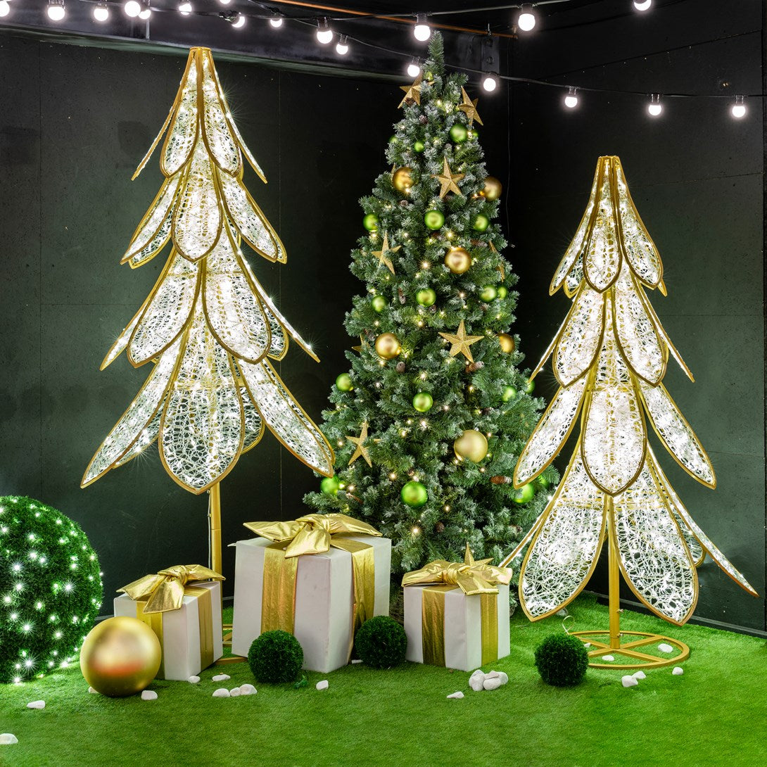 Bring joy and holiday cheer to your home or commercial space with this Giant Pre-Lit LED Ornate Christmas Tree. This magical tree features LED lights for a bright and festive display both indoors and outdoors. Perfect for municipal or commercial decoration, it's sure to make any Christmas display awesome.