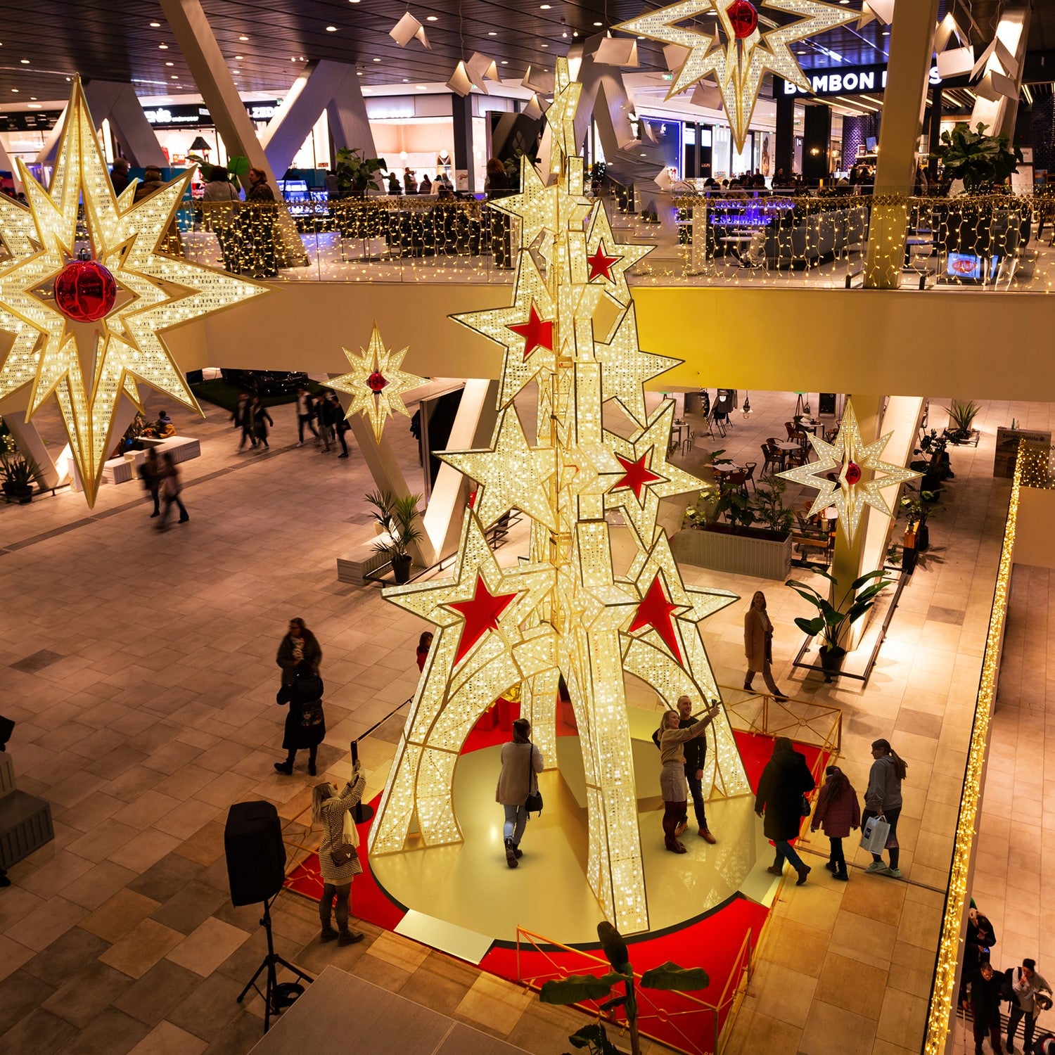 Experience the enchantment of the holiday season with our fabulous Giant Pre-Lit LED Stacked Star Tree. This stunning tree will mesmerize both indoor and outdoor spaces with its sparkling LED lights. Elevate your festive atmosphere with this extraordinary masterpiece, perfect for sophisticated municipal locations. Let its radiance captivate and delight you. A must-have for any commercial and public displays.