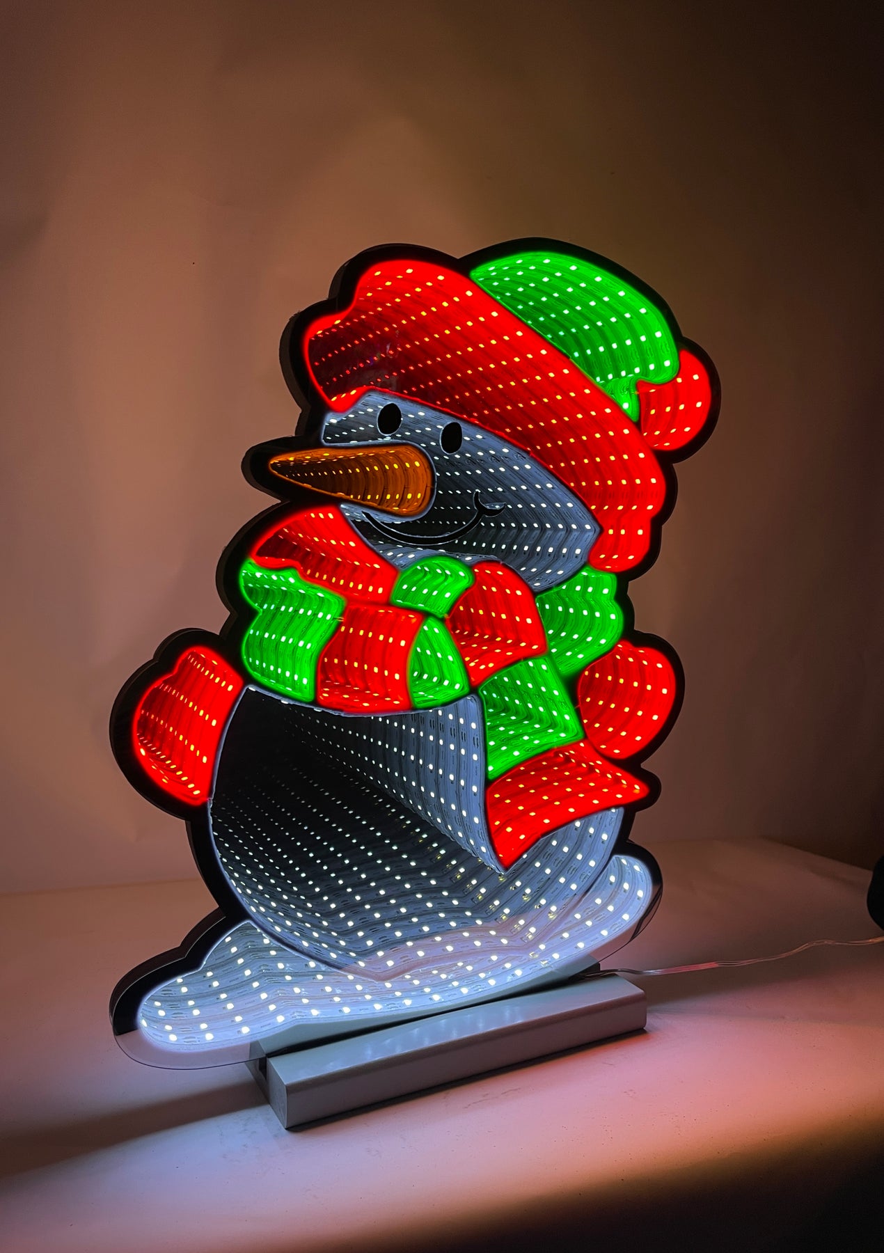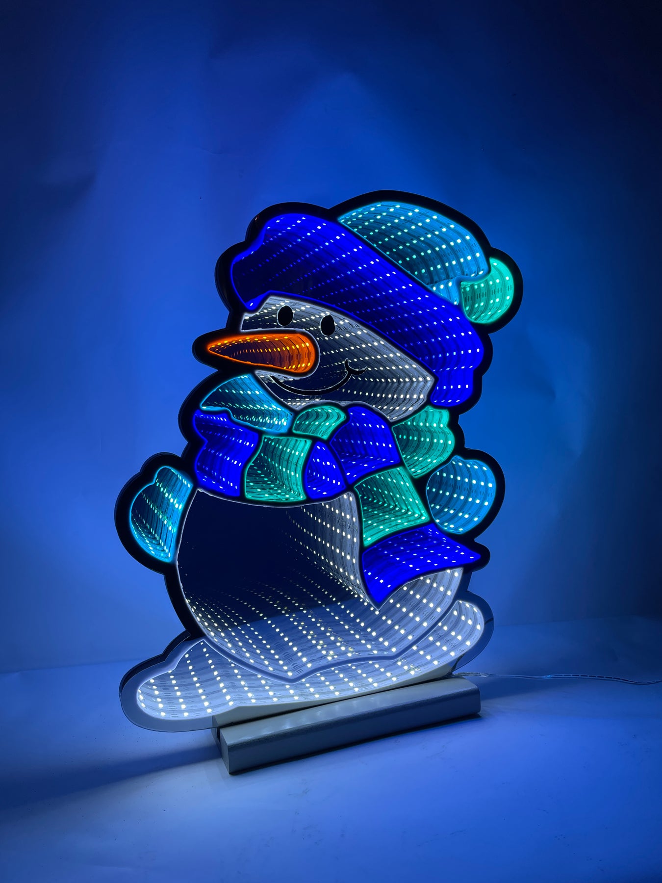 Spruce up your indoor or outdoor space with this Large Infinity Snowman Display. This display is perfect for commercial or municipal use. Plus, its outdoor rating guarantees long-lasting fun. Two color options available to match your theme.